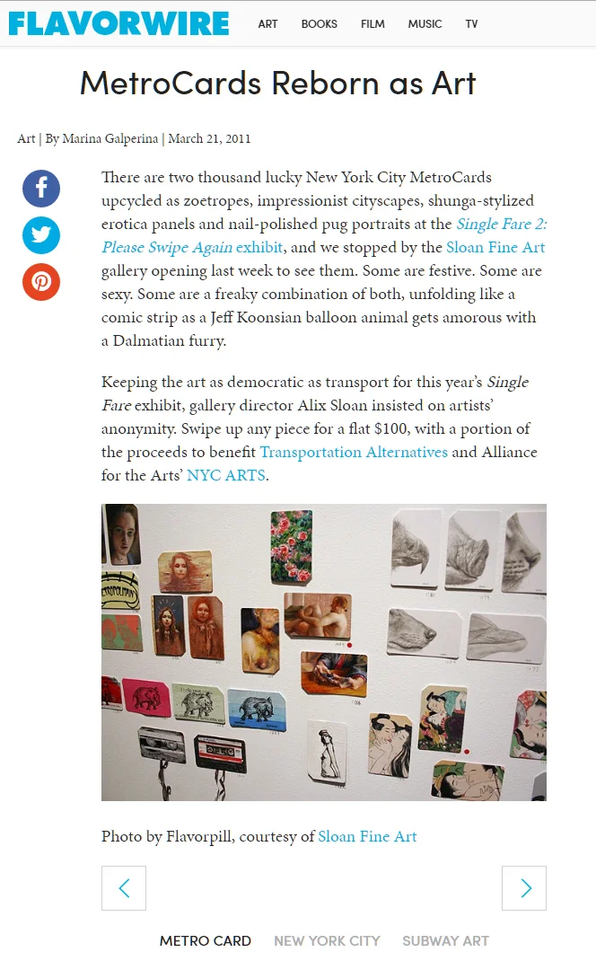 Charis' metrocards (middle) were included in the article's slideshow: http://flavorwire.com/163328/subway-cards-art/9